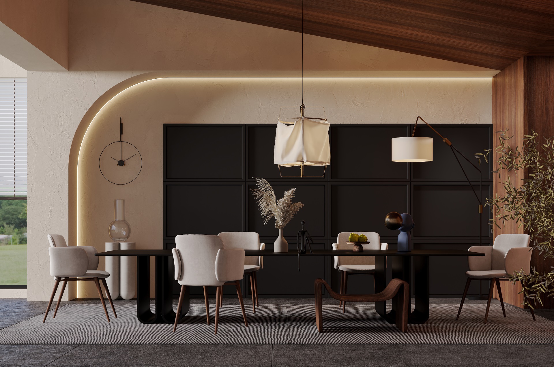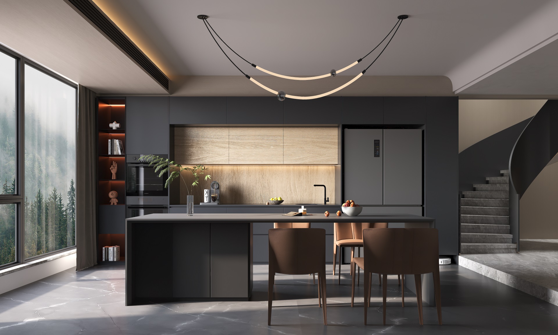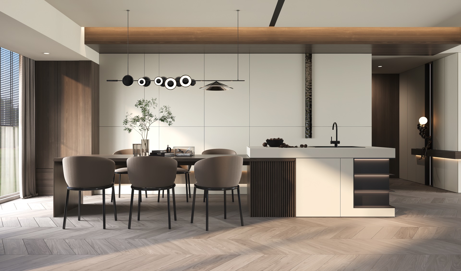 餐廳 超啞暮云灰+琥珀橡木