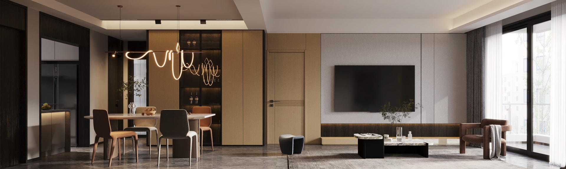 客廳 溫莎金+黑胡桃
